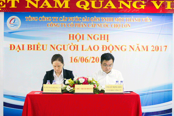 Thống nhất 18 thành viên đại diện cho tập thể NLĐ tham gia đối thoại định kỳ của Công ty cổ phần cấp nước Chợ Lớn năm 2017 (gồm 11 thành viên là BCH Công đoàn cơ sở và 07 thành viên là chủ tịch Công đoàn các bộ phận và đại diện BCH đoàn thanh niên cơ sở của Công ty).